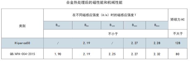特 性:磁性能和1J22接近,机械性能较高。适合与中高速电机。高饱和磁感应强度、高居里点和高磁滞伸缩系数,较高的机械强度。